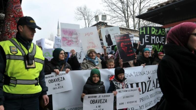 تظاهرة في البوسنة ضد حظر الحجاب في المؤسسات القضائية