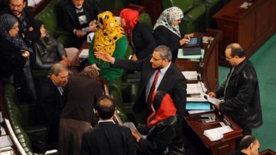 تعطلت الاحد في تونس أعمال المجلس الوطني التاسيسي (البرلمان) الذي شرع منذ الجمعة في المصادقة على دستور جديد للبلاد، إثر إعلان النائب المعارض منجي الرحوي صدور فتوى بقتله بعدما اتهمه حبيب اللوز النائب عن حركة النهضة الاسلامية الحاكمة بمعاداة الاسلام.