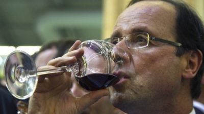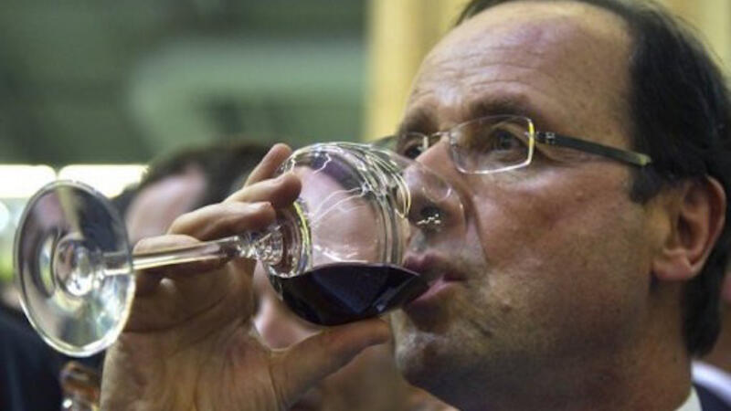 الرئيس الفرنسي فرانسوا هولاند يحتسي كاسا من النبيذ