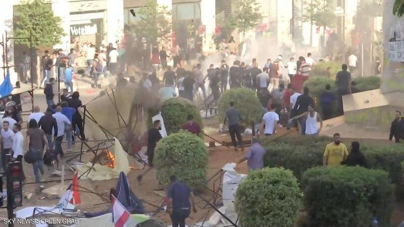 وقالت وكالة "رويترز" للأنباء، إن "رجالا يرتدون قمصانا سوداء هاجموا المتظاهرين في وسط بيروت ودمروا خيمهم في الميدان، بينما كان بعض المواطنين يصرخون طلبا للمساعدة من قوات الأمن"، وفق ما أفاد شاهد عيان.