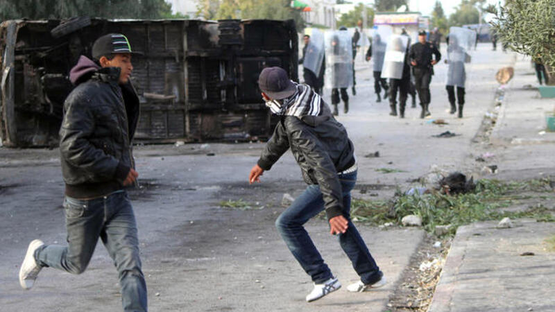 في بلدة نائية في تونس خرج محتجون غاضبون من البطالة والأساليب القمعية للشرطة مطالبين بسقوط النظام الإسلامي الجديد في تكرار للانتفاضة التي أشعلت انتفاضات الربيع العربي قبل عامين.