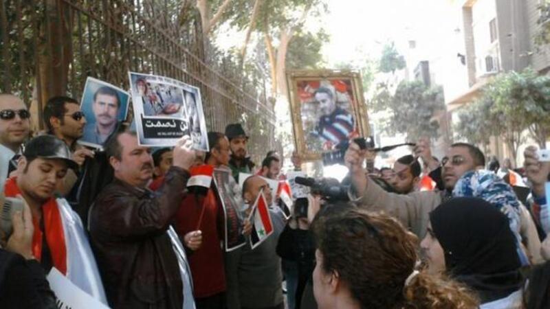 وتظاهر العشرات من التونسيين والسوريين المقيمين في تونس أمس السبت أمام مقر السفارة السورية في العاصمة تونس للمطالبة بطرد السفير السوري.