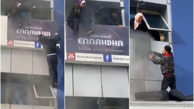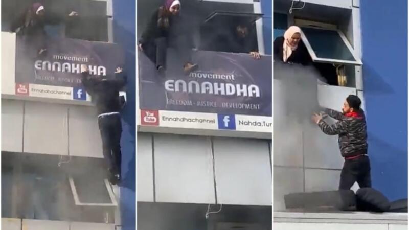 حريق في مقر #النهضة في تونس وبعض الموجودين بالمقر من بينهم القيادي علي العريض يلقون بأنفسهم من الطوابق العليا