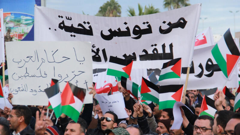 وأضاف البيان أن الموقف نابع من إرادة الشعب التونسي ومعبر عما يخالجه من مشاعر تضامن وتأييد مطلق للحقوق الشرعية للشعب الفلسطيني.