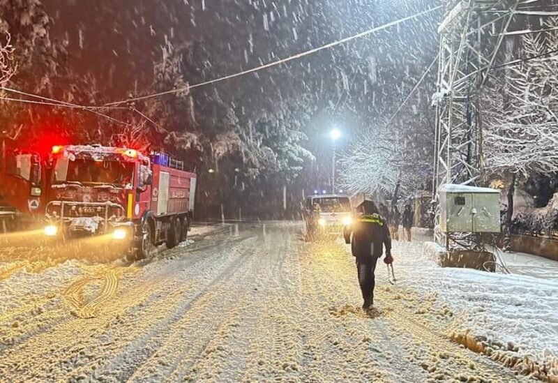 وتساقطت الثلوج في لبنان على ارتفاعات منخفضة وصلت إلى 600 متر ، وشلت حركة السير على الأوتسترادات الدولية بشكل كامل.