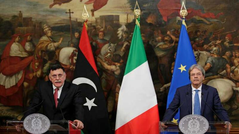 وجاء تصريح جنتيلوني بعد لقائه مع رئيس الوزراء الليبي فائز السراج، الذي يزور روما بعد يوم من اتفاقه مع قائد قوات شرق ليبيا خليفة حفتر على وقف مشروط لإطلاق النار وإمكانية إجراء انتخابات العام المقبل.