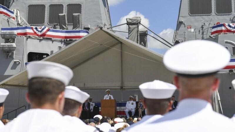 أعلنت وزارة الدفاع الأمريكية (البنتاغون) أن القوات البحرية احتفلت بإبحار المدمرة الحديثة حاملة الصواريخ "جون فين" انطلاقا من القاعدة البحرية العسكرية بيرل- هاربور.