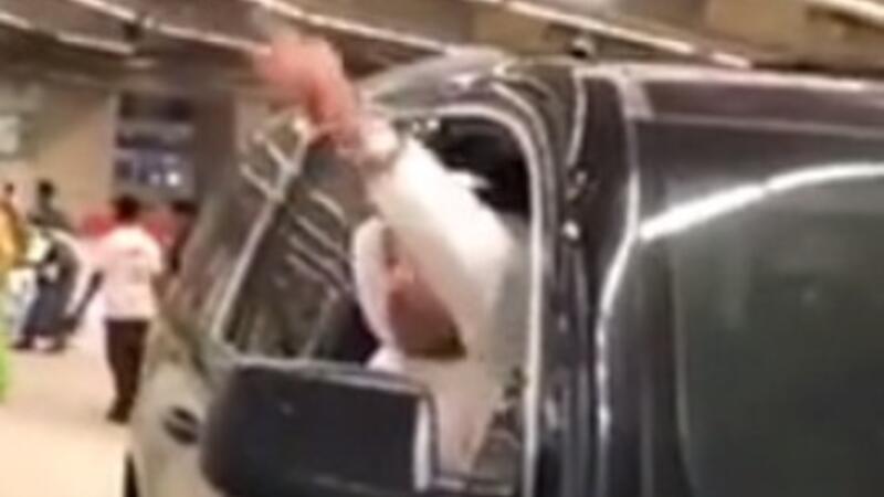 أظهر مقطع فيديو على اليوتيوب حاجًا يبدو انه من فئة كبار الشخصيات (VIP) وهو يرمي الجمرات من نافذة سيارة اوصلته بطريقة غير معروفة الى مكان رمي الجمار في منى بمكة المكرمة.
