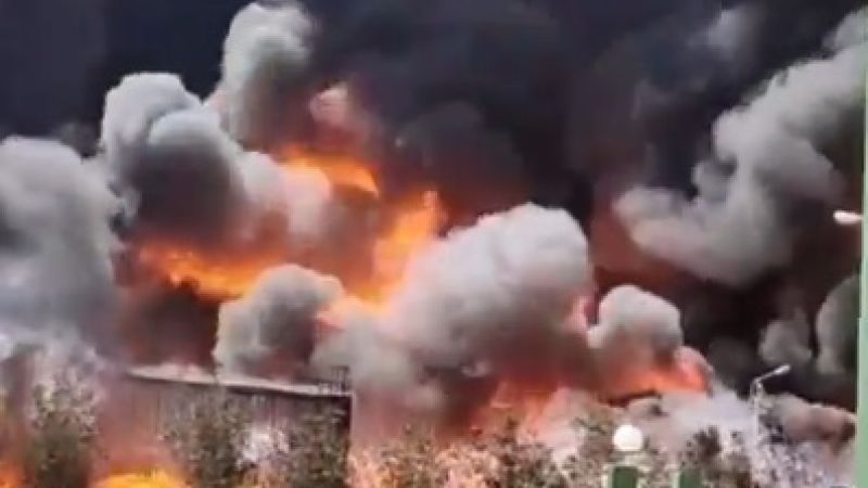 من جانبها، نشرت صحيفة "عكاظ" السعودية، مقطع فيديو للحريق الذي شبّ في مصنع للأحبار.