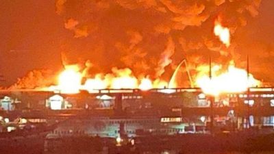 اندلع حريق شديد في مستودع للمواد الكيميائية في مدينة باسايك بولاية نيوجيرسي شمال شرقي الولايات المتحدة.