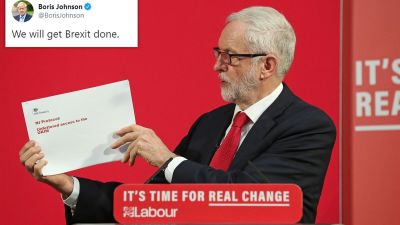 قبل أقلّ من أسبوع من الانتخابات، عرض زعيم الحزب جيريمي كوربن أمام الصحافة "تقريراً سرياً" مؤلفاً من 15 صفحة "يكشف الأكاذيب التي يحاول بوريس جونسون نشرها".