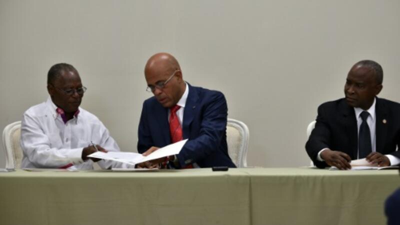 وقع ميشال مارتيلي رئيس هايتي الذي تنتهي ولايته السبت، ورئيسا غرفتي البرلمان اتفاقا ينص على تشكيل حكومة انتقالية في انتظار الاقتراع الرئاسي.