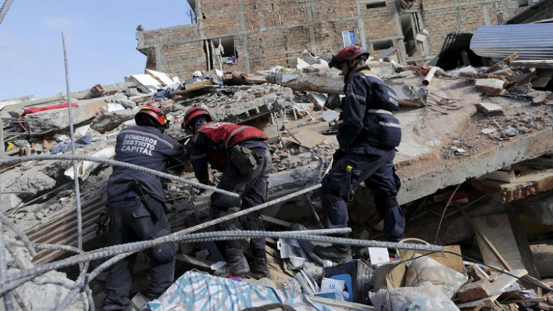 وكان الزلزال الذي بلغت شدته 7.8 درجات وهو الأسوأ الذي شهدته أمريكا اللاتينية منذ زلزال هايتي في 2010، أسفر عن سقوط 659 قتيلا و33 مفقودا و4605 جرحى.