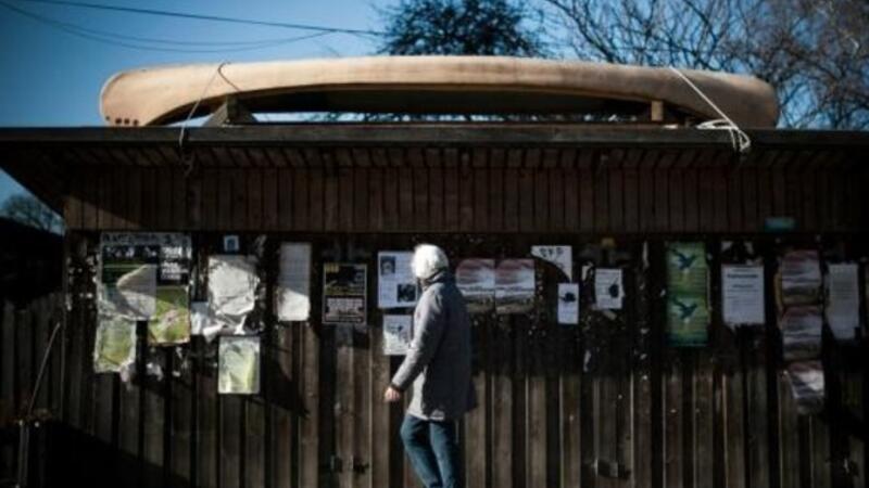 امراة تسير في احد شوارع كريستيانيا في كوبنهاغن