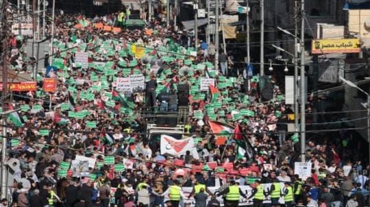 شهدت شوارع و محافظات المملكة الأردنية الهاشمية ،اليوم الجمعة، مسيرات تضامنية نصرة للمقاومة الفلسطينية، ودعما للشعب الفلسطيني في قطاع غزة، للأسبوع العشرين على التوالي .