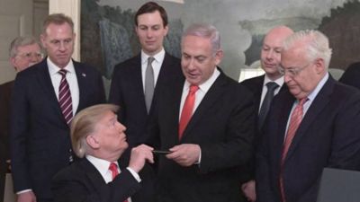 وتتضمن خطة ترامب إقامة دولة فلسطينية في صورة أرخبيل تربطه جسور وأنفاق، وإعلان القدس المحتلة عاصمة غير مقسمة لإسرائيل، إلى جانب السماح لإسرائيل بفرض سيطرتها على المستوطنات الإسرائيلية في الضفة الغربية وغور الأردن وشمالي البحر الميت. (الأناضول)