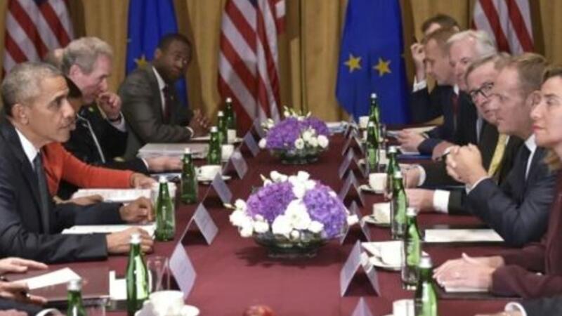 اوباما خلال لقائه بمسؤولي الاتحاد الاوروبي في وارسو