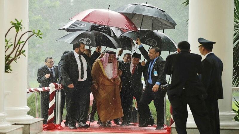 وفيما اعتبر وقتها معاملة خاصة حمل الرئيس الأندونيسي المظلة خلال استقباله الملك سلمان الذي ترافق مع هطول أمطار غزيرة.