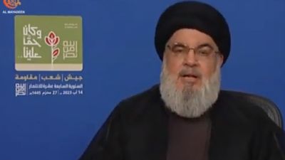 كما حذر زعيم حزب الله من انه "لن يبقى شئ اسمه اسرائيل" في حال تطورت المعركة "مع كل محور المقاومة" في اشارة الى فصائل فلسطينية وقوى تدعمها ايران.