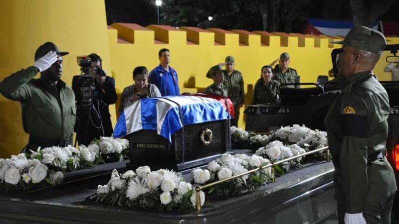وبعد رحلة استمرت ثلاثة أيام، امضى الموكب الجنائزي المرافق للرماد الذي وضع في صندوق من خشب الارز لف بعلم كوبي، الليلة في بايامو. ويفترض ان يقطع السبت ال130 كيلومترا الاخيرة ليصل إلى سانتياغو دي كوبا ثاني مدن البلاد.