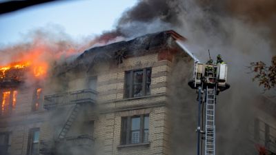 تداولت وسائل إعلام أمريكية لقطات مثيرة تظهر رياضيا سابقا وهو يلتقط طفلا رمته والدته من شرفة أحد الطوابق العليا لمبنى محترق بغية إنقاذه من الموت حرقا.