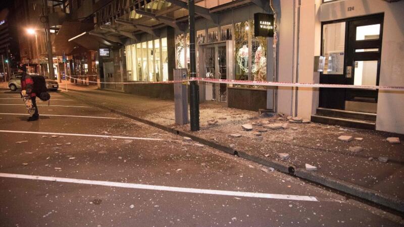وقال سكان ولينجتون إن الزجاج سقط من المباني على الشوارع.