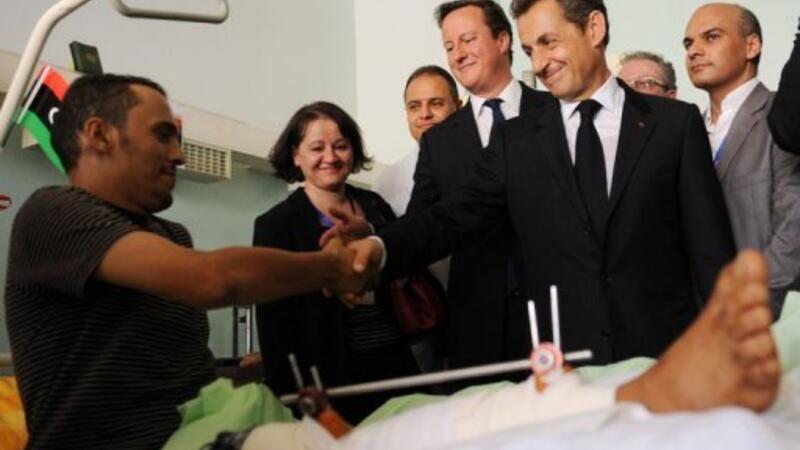 قدم الرئيس الفرنسي نيكولا ساركوزي ورئيس الوزراء البريطاني ديفيد كاميرون بحضورهما التاريخي الى طرابلس وبنغازي الخميس دعما عسكريا وسياسيا للسلطات الليبية الجديدة التي تسعى الى تعزيز شرعيتها الدولية بعد امساكها بالعاصمة في موازاة معاركها المستمرة للسيطرة على المعاقل المتبقية لمعمر القذافي.