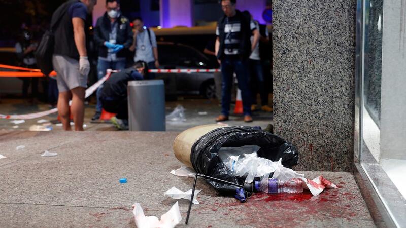 وانتهى اليوم بهجوم بسكين خارج احد مراكز التسوق في حي تاي كو شينغ الذي تقطنه الطبقة المتوسطة حيث تجمع المحتجون طوال فترة بعد الظهر.