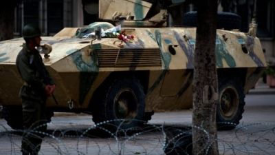واعترض الجيش التونسي الاربعاء قافلة من تسع سيارات مجهزة ببطاريات مضادات جوية تسللت الى تونس من الجزائر في منطقة صحراوية تونسية قريبة من بئر زنيقرة.