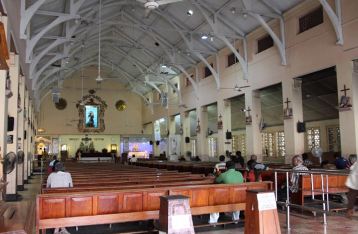 ونشر موقع "ديلي ميرور" صوراً من داخل كنيسة "سان أنتوني" يظهر الهلع بين الحاضرين.