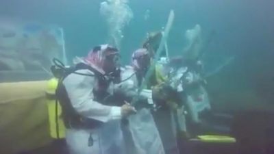 سعوديون يرقصون العرضة في قاع البحر (فيديو)