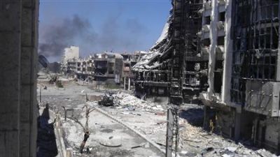 وكان مدير المرصد رامي عبد الرحمن قال في اتصال هاتفي مع وكالة فرانس برس ان "القوات السورية قصفت حي الخالدية اليوم بمعدل ثلاثة قذائف في الدقيقة".
