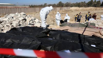 وأوضحت الوزارة، في بيان عبر منصة "تليغرام"، أن الجهات المختصة حضرت فوراً إلى المكان، وبدأت بإجراء الفحوصات اللازمة لتحديد هوية الضحايا والظروف المرتبطة بعمليات الدفن، مع التحقق من احتمال وجود رفات إضافية في المنطقة.