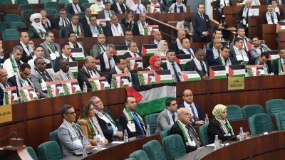 “فلسطين شهدا فلسطين شهدا”، “الجيش والشعب معك يا غزة”، بهذه العبارات هتف نواب جزائريون توشحوا بالكوفية الفلسطينية، خلال جلسة للبرلمان، تعبيرا عن موقفهم الداعم والمؤيد للقضية الفلسطينية، ورفضا لما يجري في قطاع غزة، من مجازر ومذابح جماعية بحق المدنيين العزل، على يد جيش الإحتلال الإسرائيلي.
