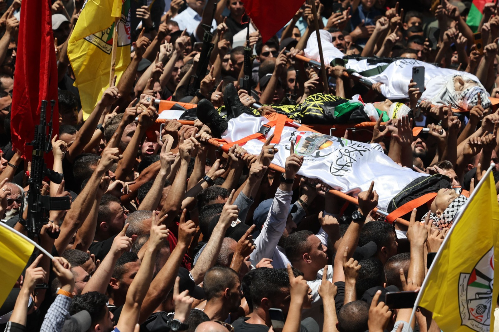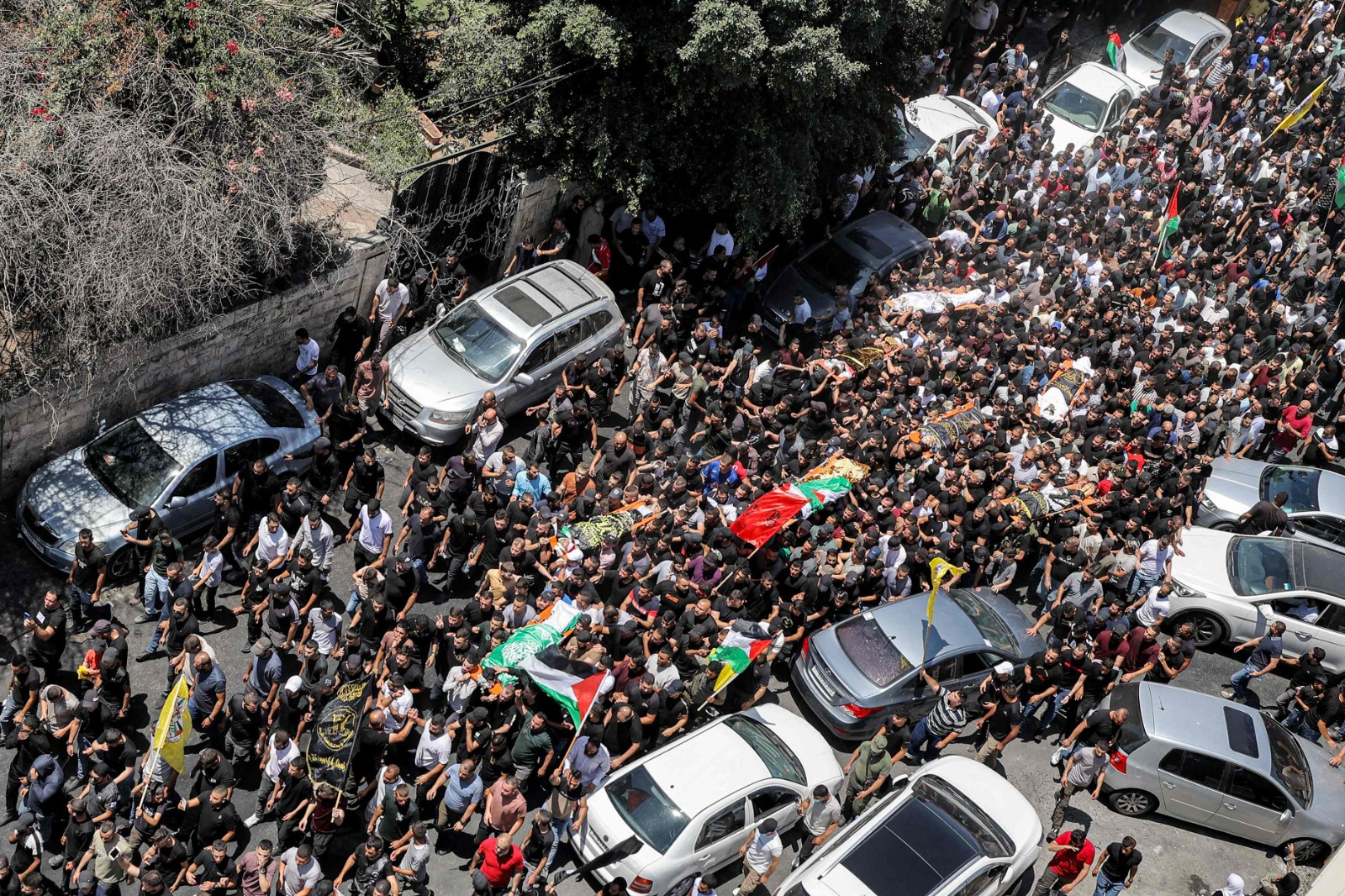 شيع الفلسطينيون 11 شهيدا سقطو خلال دفاعهم عن مخيم جنين امام العدوان الاسرائيلي الذي بدأ يوم الاثنين واعلن عن انتهائه اليوم الاربعاء والذي ادى الى دمار كبير في المخيم وتهجير المئات من سكانه .