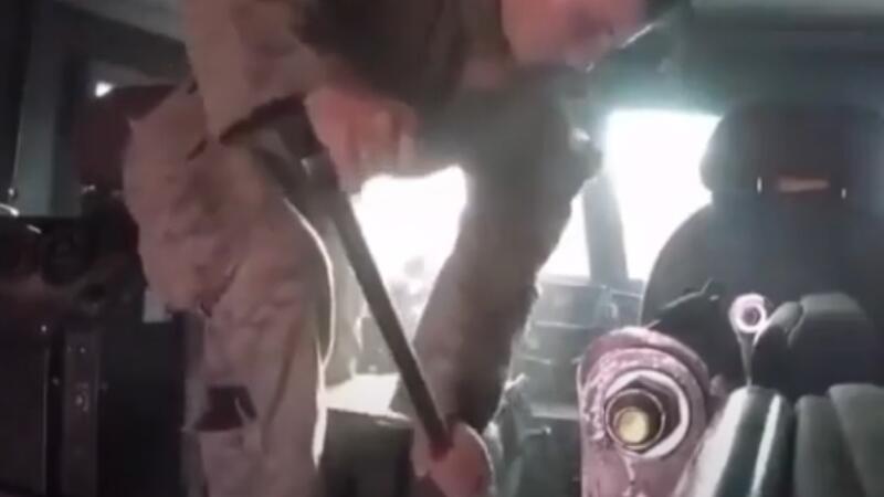 ويشمل الفيديو لقطات تظهر عسكريين أمريكيين وهم يخربون أجهزة في عربة مصفحة ويكسرون نوافذ سيارة رباعية الدفع عليها علامة الناتو.