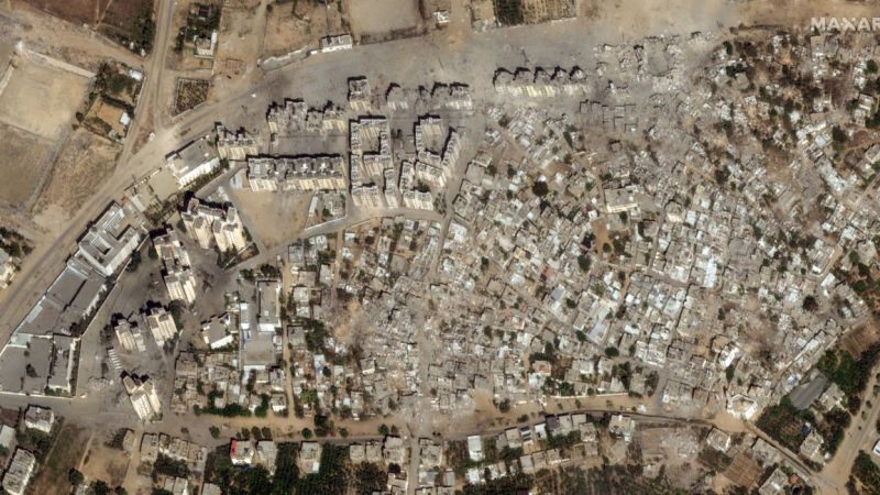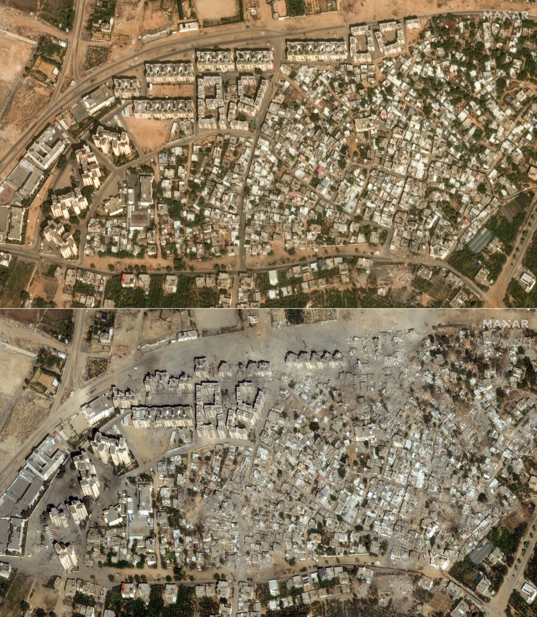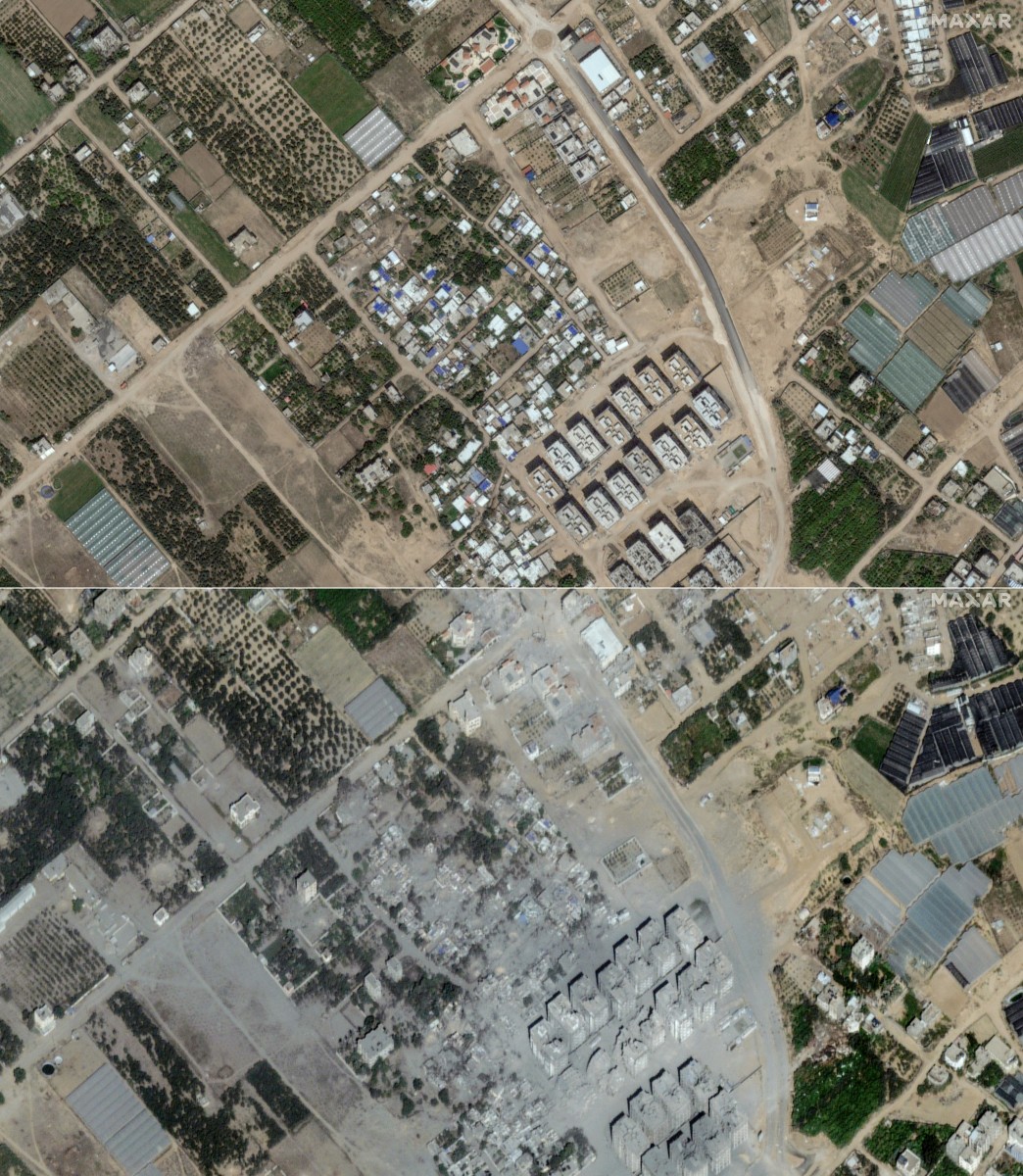 تلك الصور التي التقطتها شركة "ماكسار تكنولوجيز" الأميركية، تظهر تغيراً ملحوظاً في المشهد قبل وبعد القصف الإسرائيلي العنيف.