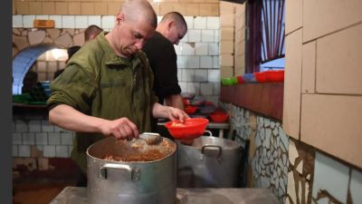 جندي أوكراني أسير في مطبخ أحد السجون بجمهورية دونيتسك الشعبية