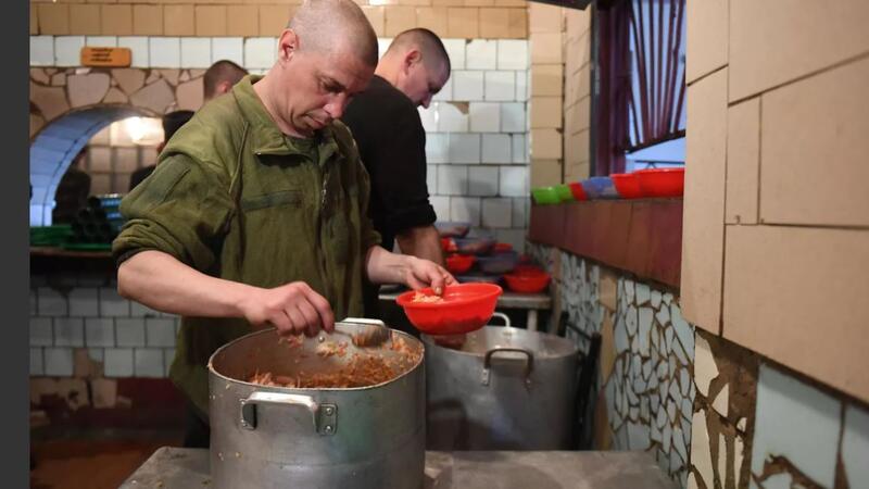 جندي أوكراني أسير في مطعم أحد السجون بجمهورية دونيتسك الشعبية