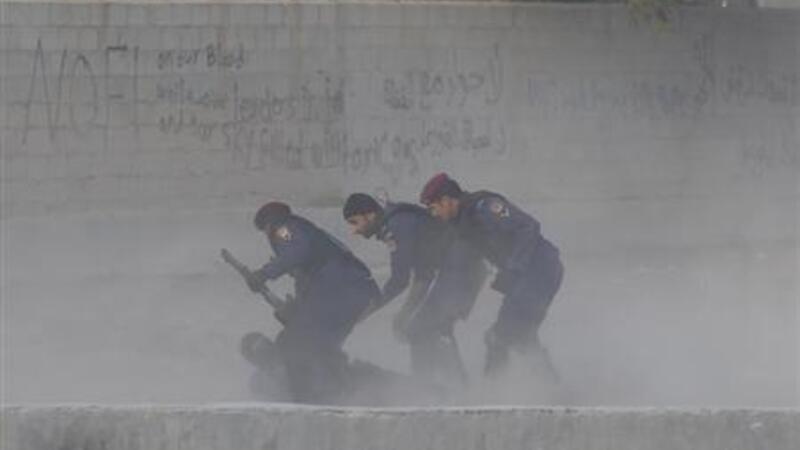 وتحولت المظاهرت في قرية الشاخورة غربي المنامة إلى اشتباك بين الشرطة وحوالي 300 متظاهر يرددون شعارات مناهضة للحكومة عند حاجز من السلك الشائك.