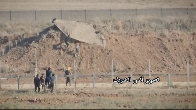 واقتحم متظاهرون فلسطينيون السياج الفاصل شرق مدينة جباليا شمال قطاع غزة، واعتلو دشمة لقناصة الاحتلال