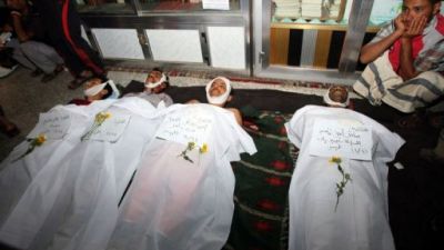 وقتل خمسة متظاهرين واصيب 34 آخرون بجروح في صنعاء الخميس برصاص اطلقه مدنيون موالون للرئيس صالح على تظاهرة شبابية مناهضة للمبادرة الخليجية ومطالبة بمحاكمته.