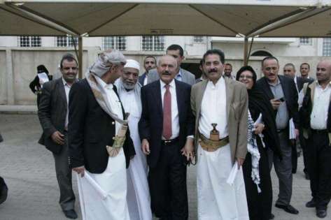 وأظهرت الصورة صالح ،وقد التف حوله عدد من الأشخاص ،داخل منزل وسط العاصمة اليمنية صنعاء.