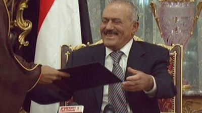 ووصل الرئيس اليمني الى السعودية في وقت سابق الاربعاء لتوقيع مبادرة مجلس التعاون الخليجي لنقل السلطة بعد احتجاجات شعبية على حكمه بدأت قبل عشرة أشهر وأصابت اليمن بالشلل.