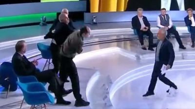 وقع شجار عنيف خلال برنامج تلفزيوني أوكراني، بعد أن هاجم صحفي ضيفا من حزب معارض.