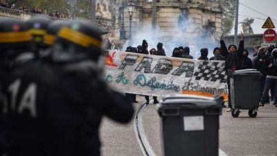 وأشارت "فرانس برس" إلى أن نحو مئتي ملثم واجهوا أفراد الشرطة الذين انتشروا بأعداد كبيرة بعد ظهر أمس السبت في شوارع مونبيلييه.