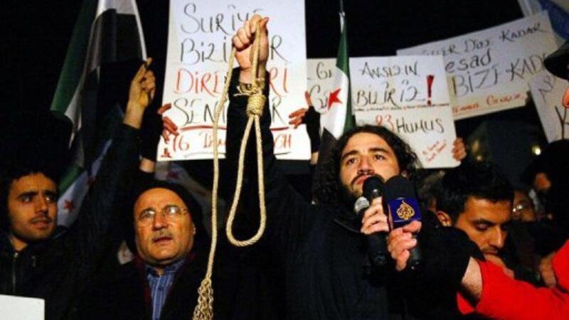 وعم الاستنكار والشجب في عدة اماكن وهاجم معارضون سوريون سفاراتهم في عدة عواصم اوروبية (اثينا ولندن وباريس) وعربية (الكويت والقاهرة والرياض) وحاولوا اقتحامها.