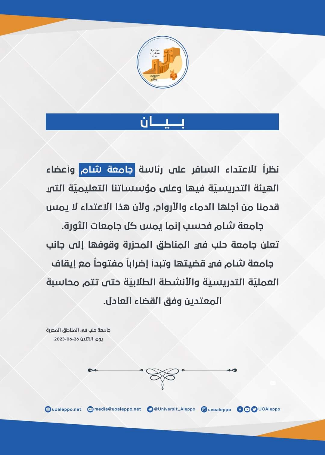 الطالب توجه للكادر التدريسي خلال الاعتداء بعبارات بينها "انا بشتريكم، وبدي أنجح غصباً عنكم"، فيما اُغلقت جامعة الشام حتى إشعار آخر..