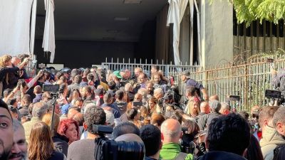 وياتي توافد أهالي الضحايا إلى أمام قصر العدل دعما لقاضي التحقيق طارق بيطار الذي اعلن عن استئناف التحقيق بعد 13 شهرا من توقفه نتيجة شكاوى قدمها نواب وسياسيين ضده كان قد استدعاهم للتحقيق