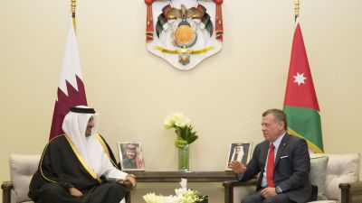 يستقبل العاهل الأردني الملك عبدالله الثاني، في عمان، اليوم الأحد، أمير قطر الشيخ تميم بن حمد، الذي يبدأ زيارة رسمية إلى المملكة اليوم.